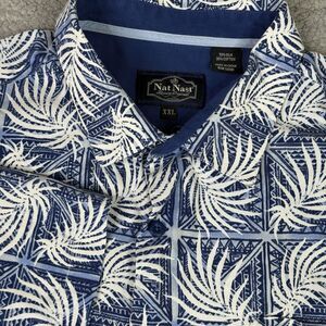 Nat Nast Shirt Mens XXL Blue Palm Print Silk Blend Button Up Tropical Hawaiian