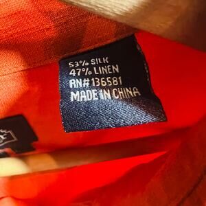 Nat Nast Tropical Orange Silk Embroidered Short Slv Shirt Top Casual Button - XL