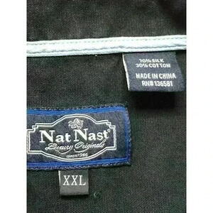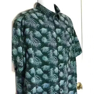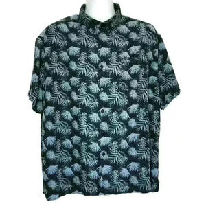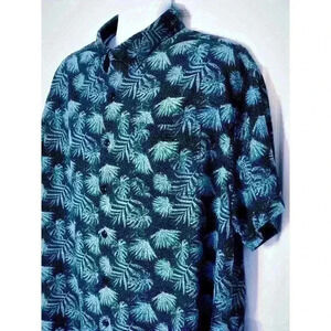 Nat Nast shirt XXL button front palm frond 70% silk 30% cotton Hawaiian Y2K navy