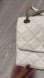 Chic Natalia medium flap shoulder bag with cream quilted design. Versatile gold chain straps can be worn double or single as long or short shoulder bag. Inside thin pocket and outside slip pocket. Turn clasp for closure