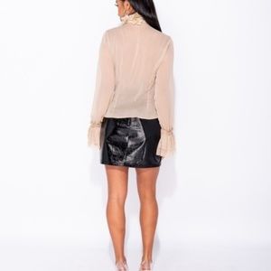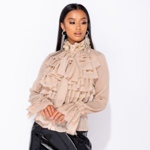 Natalia Nude Ruffle Front Pussy Bow Blouse Top