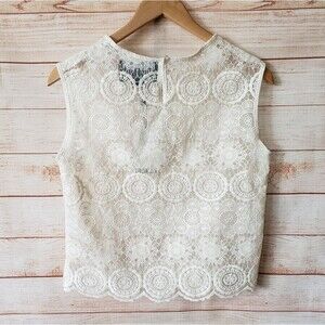 Natalia Romano Lace Semi-sheer Sleeveless Top White Size Medium