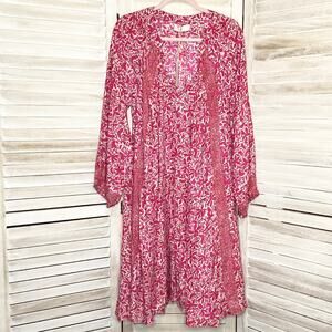 Natalie Martin 100% Silk Short Fiore Swing Dress Gloriosa Hot Pink Floral XL NWT