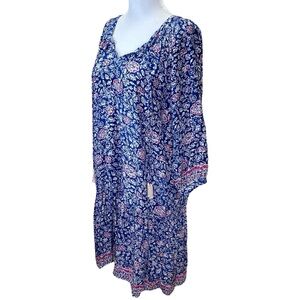 Chic mini dress with a vibrant floral pattern. Features a relaxed fit and tassel details. Perfect for casual outings.