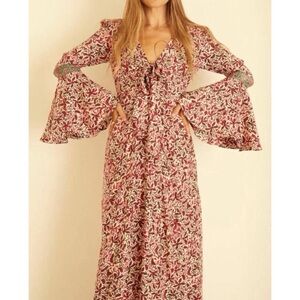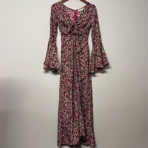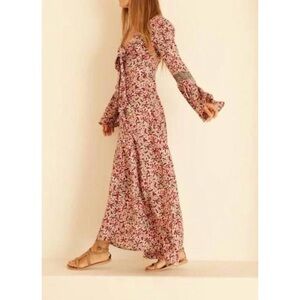 Natalie Martin Frances Dress Silk Gloriosa Print Maxi Dress Flounce Sleeve XS