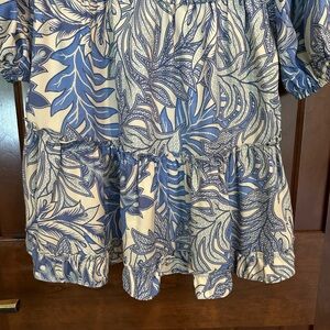 Natalie Martin Long Sleeve Maggie Dress in Blue and Cream Size Large 100% Silk