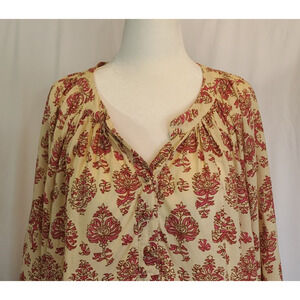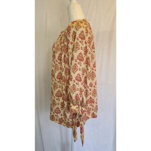 The Natalie Martin Multicolor Renata Cyprus Print Top in size Small is a stylish blouse perfect for casual occasions in the winter, fall, or spring. The top features a V-neckline, long balloon sleeves, and a relaxed fit, making it comfortable and on-trend. Made from rayon fabric, the top should be hand washed only to maintain its quality. With its unique Cyprus pattern and colorful design, this top is a versatile addition to any woman's wardrobe.