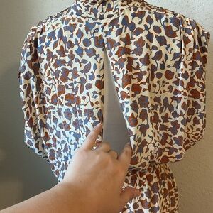 - abstract print with splatters throughout ( see photos 7 & 8 for print up-close)