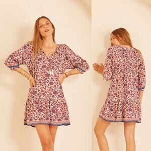 Natalie Martin Stevie Mini Dress Bloom Lapis Coral Floral Size XS NWT Bohemian