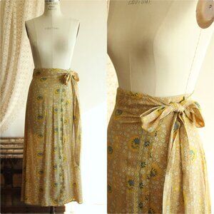 Natalie Martin Womens Wrap Skirt, Size Small, Yellow and Blue Floral Print Rayon