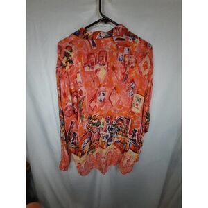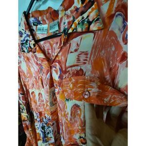 Natalie + Me Pure Silk Button Up Floral Watercolor Art Button Front L Large