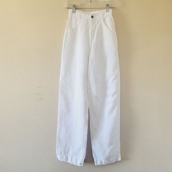 Natalie Rolt 100% Linen White Wide Leg High Rise Pants 0 Eddy Coastal Lagenlook