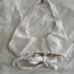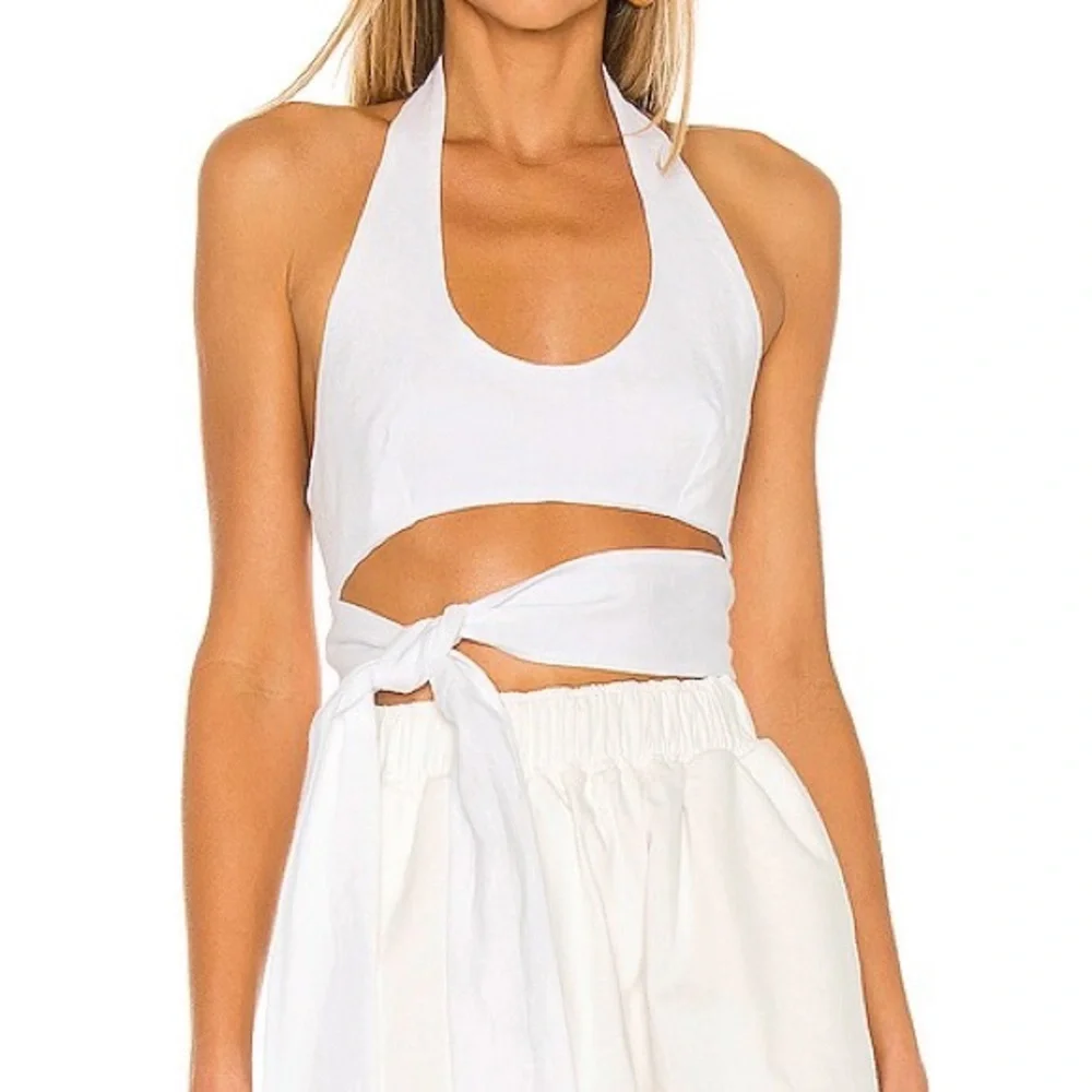 Elevate your style with this chic white halter wrap top. Perfect for any occasion, it offers a flattering fit and modern design.