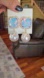 New with tags Natasha Couture statement earrings with a bluish pink square glass crystal in a goldtone setting surrounded by two rows of pave set crystals with a large faux pearl drop. Leverback pierced back. Excellent condition.