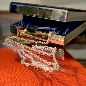 Purse measures 6"x5"x2" with detachable 48" chain (24" when worn). Inside is in perfect condition with the exception of one mark.