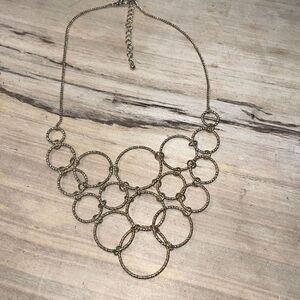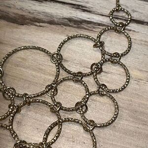 Natasha Interlocking Sparkling Etched Gold Tone Necklace Signed Natasha