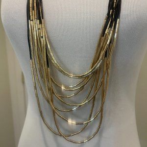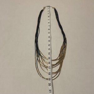 10 Strand Necklace of Leather-like Strands with Gold Column Beads