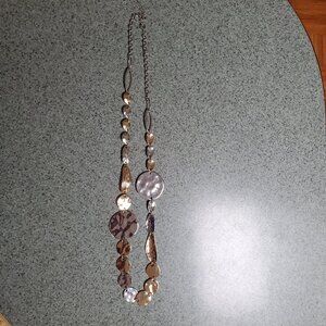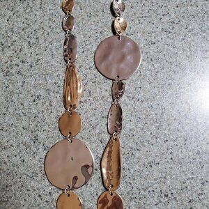 Natasha Necklace Gold Silver Tone Hammered Asymmetrical Shapes Long Signed 38". Includes a 3 inch extender. Super cute. Slightly used.