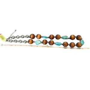 Natasha Wood Faux Turquoise Silver Tone Statement Necklace