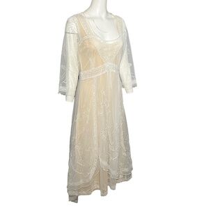Nataya 40163 Downton Abbey Ivory Peach Tea Party Gown Tulle Dress Size Large NWT