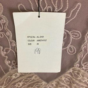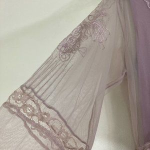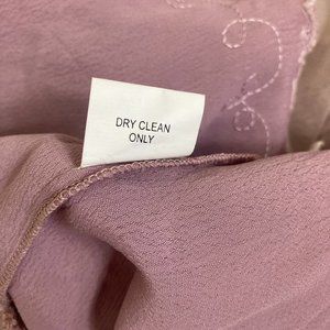 Channel your inner romantic in this ethereal ankle-length gown. Gorgeous mauve dress with delicate cream embroidery overlay top with mauve crepe under slip. Features sheer sleeves and layered design. It is quite small - fits like a 2 or 4.