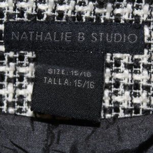 Nathalie b studio black/white blazer in size 15/16. gently used excellent condition. vintage piece. measurements taken flat: pit to pit 22", length 24". (O23)