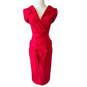 Nathan Jenden Sexy Red V-Neck Midi Length sleeveless Dress size XS