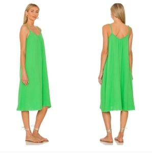 Nation LTD Adele Midi Dress Gauzy Cotton Relaxed Summer Lime Green