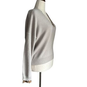Nation LTD Baby Alpaca Cotton Blend Sweater Size S Beige Distressed V-Neck