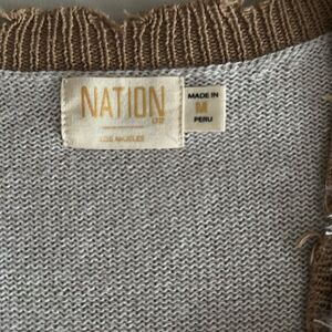 Elevate your wardrobe with this luxurious Nation LTD sweater, crafted in Peru from a premium blend of 72% baby alpaca and 28% cotton. This ultra-soft knit features a relaxed fit, V-neckline, and distressed raw edge trim at the collar and cuffs for a chic, lived-in look. Perfect for layering in any season.