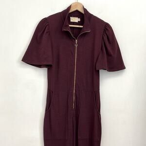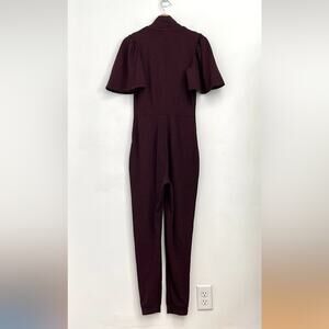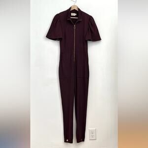 Nation LTD Billie Femme Coveralls Puff Sleeve Short Sleeve Front Zip in Wine XS