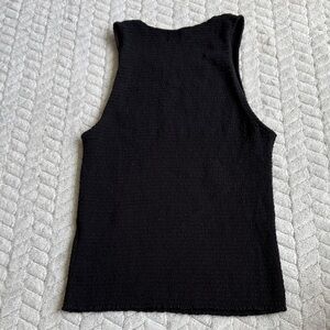 Sleek black tank top with a textured finish. Ideal for layering or wearing alone. Versatile and stylish.