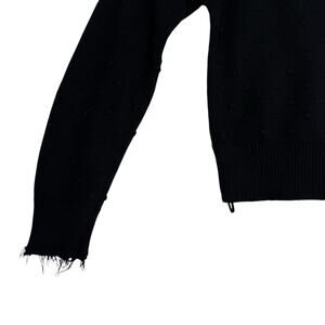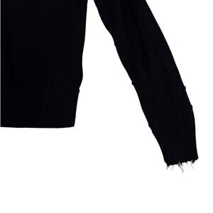 Nation Los Angeles Ltd Cardigan Sweater Womens XS Black Distressed Swiss Dot Knit V Neck Light Weight Distressed Perfectly Undone 100% Cotton