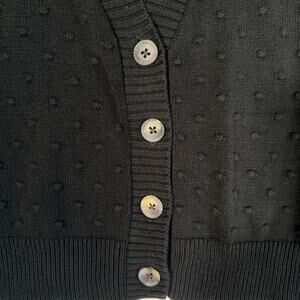 Keywords: Nation Los Angeles Ltd Cardigan Sweater, Womens, Extra Small, Black Distressed, Swiss Dot Knit Sweater, V Neck, Light Weigh, Ethical, Perfectly Undone, Comfortable, 100% Cotton, Summer, Spring, Fall, Winter, Layering, Preppy, Bauble