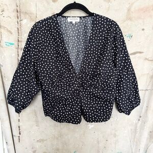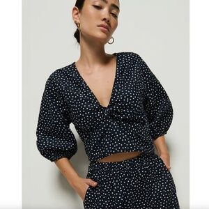 The Celeste Top from Nation LTD is the solution you're looking for when you want to look polished without the effort. This one features a ruched twist detail at the bust, 3/4 balloon sleeves, and a daring v-neckline. In a 100% pima cotton, it's soft and breathable with just the right amount of structure.