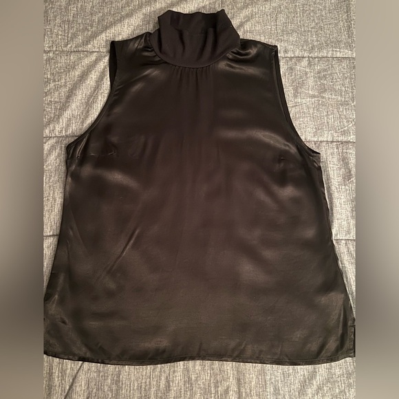 Nation LTD Danielle Ribbed Mock Neck Black Satin Sleeveless Top Sz S EUC Made in USA