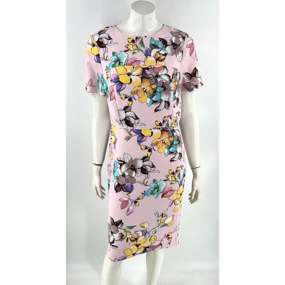 Nation LTD Dress Womens Size 12 Pink Blue Floral Sheath Short Sleeve Back Zipper