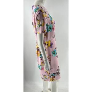 Nation LTD Dress Womens Size 12 Pink Blue Floral Sheath Short Sleeve Back Zipper.