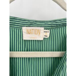 Features/Tags: V-Neck, Button Front, Striped, Tiered, Puff Sleeve with Ties