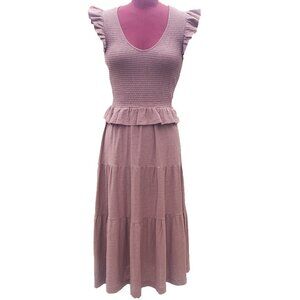 Nation LTD Fabienne Dress Mojave Knit V Neck Midi Smock Bodice Small