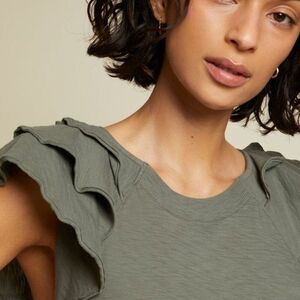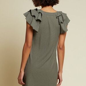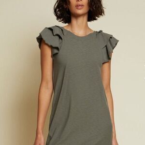 Excellent condition Nation Ltd cotton t-shirt dress with rounded neck and tiered flutter sleeves. Great layering piece.