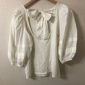 Nation LTD Gracie Pintuck Combo Cotton Tee in Off White - Size Small