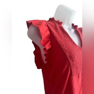 A versatile blouse that works from desk to dinner!Elevate your style with the Habiba Fancy Tank Top by Nation LTD, a sleeveless piece crafted from 100% pima cotton, perfect for your spring wardrobe. This tank, in an elegant tan hue, features a V-neckline and textured smocked details with playful ruffles at the neck and shoulders. Originating with a pull-on closure, its lightweight design ensures an easy fit, ideal for tucking into high-waisted denim. Care involves machine washing and air drying, keeping it convenient for everyday wear.
