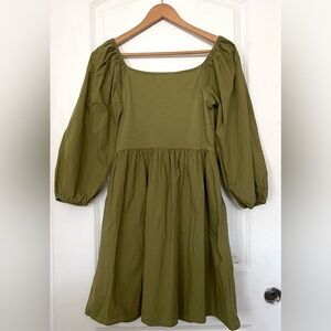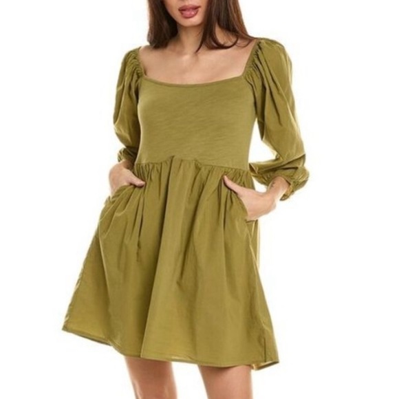 Nation LTD Heddie Combo Babydoll Dress Lichen Olive Green pockets small S