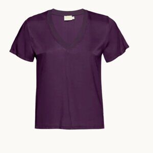Brand new with tags, size medium, color: Fig Jam. This classic, short sleeve tee will be your go-to staple this season and beyond. Meet the June V-neck Tee by Nation LTD, a must-have in Smoke for an effortlessly chic summer look. This short sleeve tee is designed with a laid-back ribbed neckline and is bra-friendly for added comfort. Composed of 100% Rayon, it offers a mid-weight, stonewashed feel that mimics silk, perfect for a minimalist yet stylish wardrobe. Closure is a simple pull-on, and care instructions include hand washing to maintain its quality.