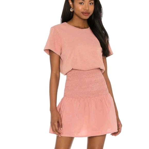 Nation LTD Kacy Combo Dress Pink Glaze Short Smocked Designer Boho Summer Size M