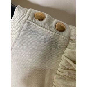 Long Sleeve Buttoned Shoulder Slub Cotton Top Cream