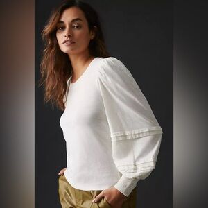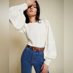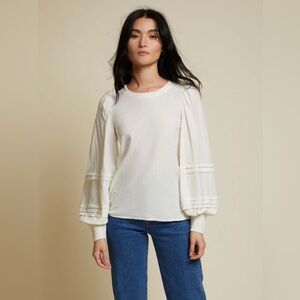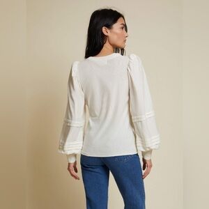 Elegant off white l/s with puff sleeves. Soft and stylish. Perfect for any occasion.