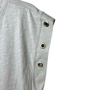 Nation LTD Oran tee, grommet muscle tee, pumice tan sleeveless top, designer casual tee, elevated basic top, modern muscle tank, minimalist sleeveless shirt, size large women’s top