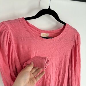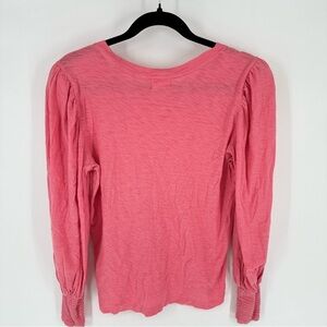 Nation LTD Pink Puff Sleeve Casual Pima Cotton Longsleeve Blouse Tee